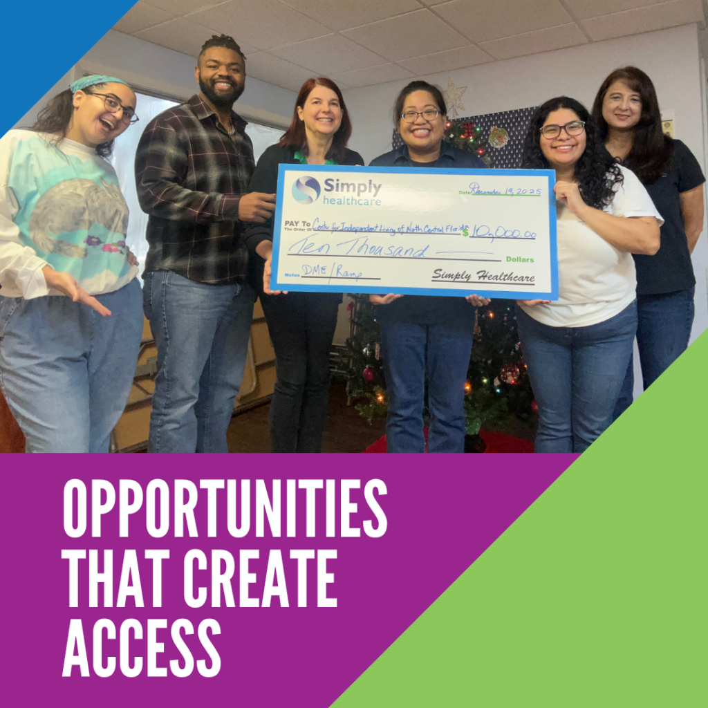 Through an opportunity with the Florida Association of Centers for Independent Living (FACIL), we were able to submit a grant alongside Simply Healthcare and receive $10,000 toward direct services for individuals with disabilities in our community.